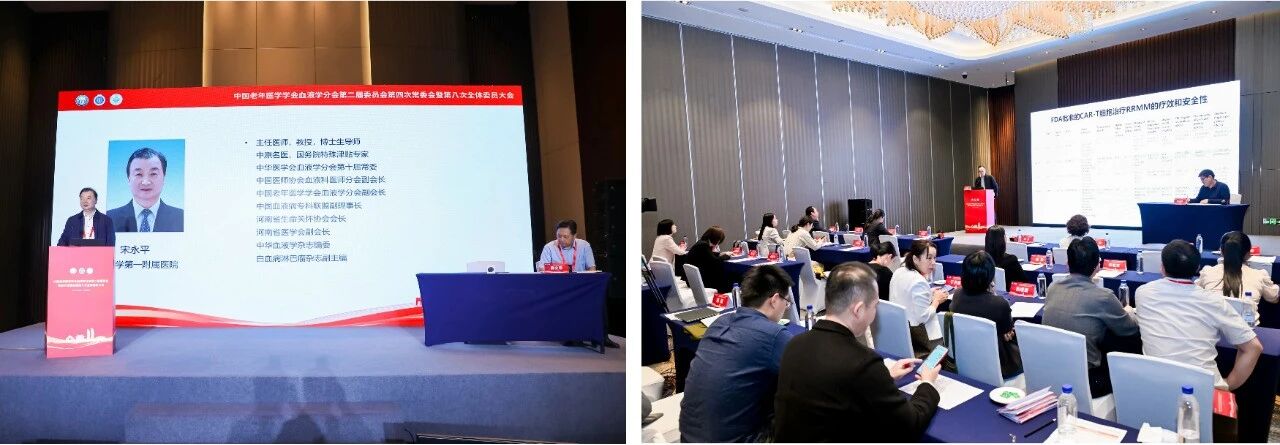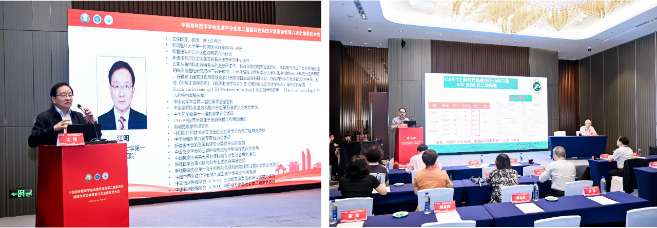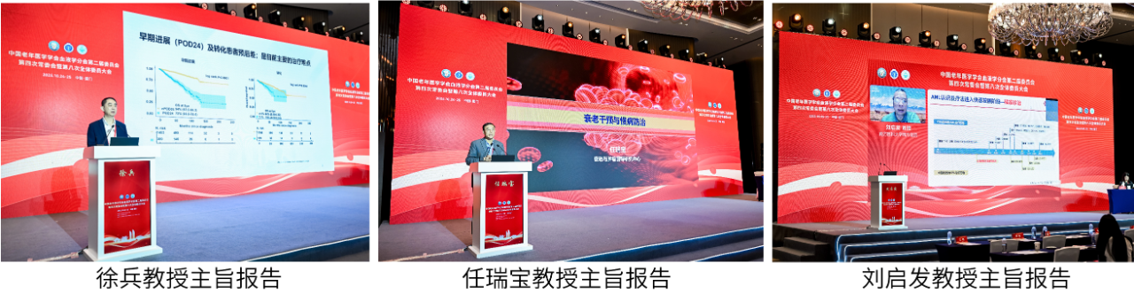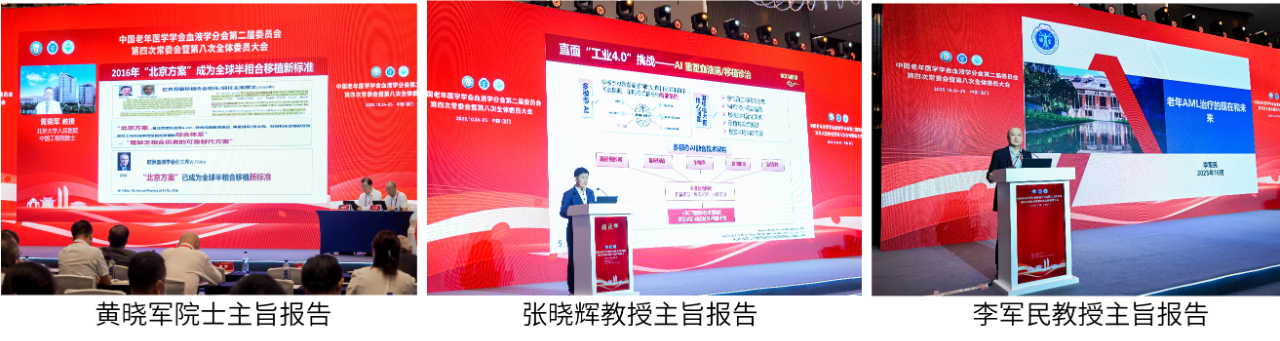 随后,六场高水平大会报告依次展开:黄晓军院士回顾《造血干细胞移植50年》的恢弘历程;张晓辉教授探讨《大数据驱动的移植新范式》;李军民教授深入解析《老年急性髓系白血病(AML)治疗策略》;徐兵教授系统阐述《惰性淋巴瘤诊疗进展》;任瑞宝教授分享《衰老干预与慢病防治的创新研究》;刘启发教授介绍《AML精准诊疗体系的构建与应用》。这些报告兼具理论深度与临床价值,为参会学者带来了一场兼具深度与广度的学术盛宴,助力大家在老年血液病诊疗领域的认知与实践再上新台阶。