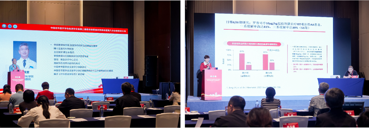 红细胞疾病专场在浓厚的学术氛围中拉开帷幕,由中国老年医学会血液病学分会副会长张凤奎教授进行开场致辞,韩冰教授、孙自敏教授、王福俤教授、许改香教授、冯兴民教授、赵馨教授分别围绕《再障免疫抑制治疗进展》《脐带血移植》《铁代谢相关研究进展》《阵发性睡眠性血红蛋白尿症的治疗进展》《骨髓巨核细胞在老鼠再生障碍性贫血模型中的免疫特性》《自身免疫性溶血性贫血治疗进展》等专题进行分享,现场学术研讨氛围浓厚,专家们针对红细胞领域的核心议题深入交流,为老年红细胞相关疾病的临床诊疗与科研创新提供了兼具专业性与丰富性的思路参考。