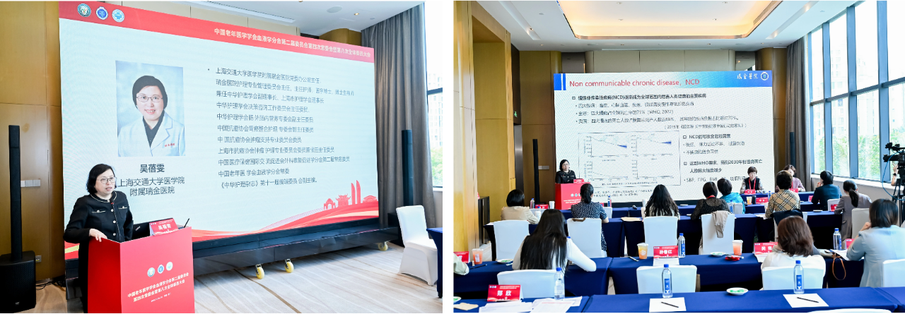 10月24日下午,护理专场的精彩呈现为当日的学术议程画上了圆满句号,由中国老年医学学会血液学分会常委吴蓓雯教授进行致辞,聚焦老年血液病护理的实践与创新。吴蓓雯教授、颜霞教授、王革教授、龙正美教授、彭昳教授、闵南教授分别围绕《护士在慢病管理实践中的作用与启示》《单倍体造血干细胞移植感染防控体系的构建和应用》《一例白血病患者化疗后蚊虫叮咬面部蜂窝组织炎的护理》《一例异基因造血干细胞移植后患者合并肠道GVHD及带状疱疹的病例讨论》《心“营”呵护,渡危为安-1例合并心功能不全的老年alo-HSCT患者的营养护理个案》《一例两性霉素B治疗M3白血病患者真菌感染的观察与护理》等专题进行汇报,现场护理同仁们结合临床深入交流,在老年血液病护理的专业实践与经验传承中展现了细致入微的专业素养,为提升老年血液病患者的护理质量贡献了护理领域的智慧与力量。