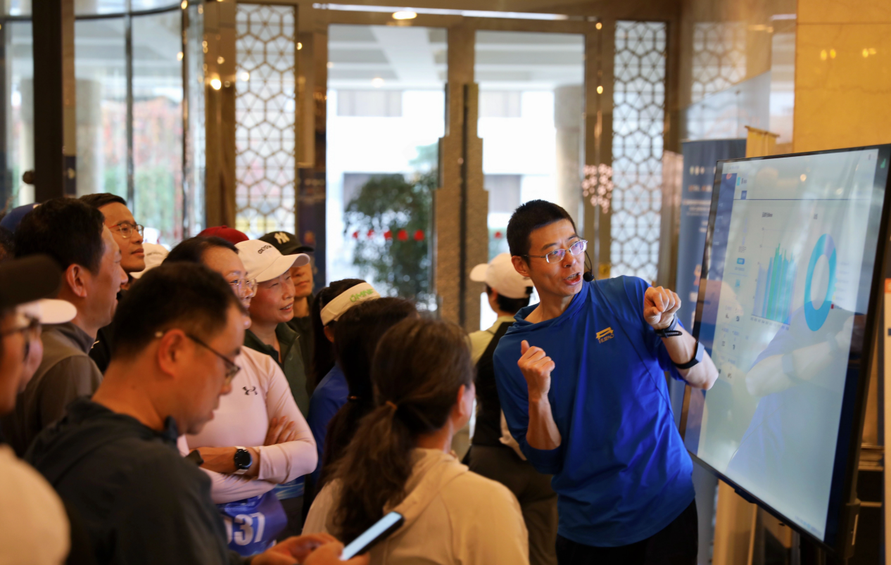 本次活动的最大亮点在于科技元素的深度融入。运动健康分会在各界支持下,为参与者配备了智能运动手环,不仅能实时显示心率、卡路里消耗等数据,还能通过蓝牙连接活动专属小程序。活动中当有参与者心率超过安全阈值时,手环会立即报警并推送预警信息,现场志愿者也会及时上前提供调整建议。活动结束后专家现场数据截图,让参与者更科学地了解运动数据,科学健身,健康运动。